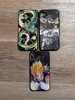 Tres fundas para iPhone 12 con diseños de Dragon Ball. - Diseño de Shenlong. - Diseño de Goku. - Diseño de Vegeta.