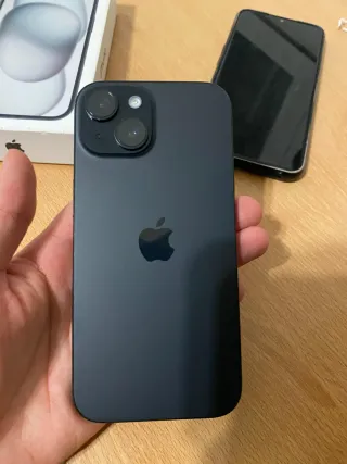 iPhone 15 en color negro, todo original a excepción de una pequeña grieta. - Pantalla de 6.1 pulgadas. - Cámara dual de 12 MP. - Chip A16 Bionic. - Capacidad de 128 GB.