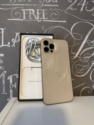 Vendo iPhone 12 Pro Max, dorado. El teléfono se vende con sus cajas originales. - iPhone 12 Pro Max dorado: con un restallo en la parte baja de la pantalla