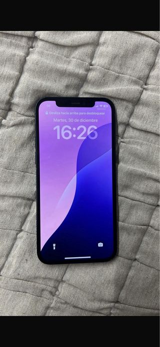 iPhone 12 con 128 GB de almacenamiento y batería al 100%. Disponible en negro y morado. - Capacidad: 128 GB - Estado de la batería: 100% - Colores disponibles: Negro, Morado