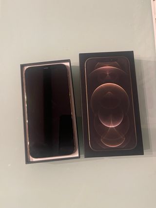 Teléfono móvil iPhone 12 Pro en color dorado. - Incluye cable de carga. - Caja original.