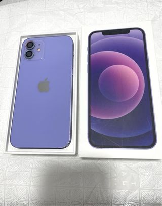 Teléfono móvil iPhone 12 purpura. - Capacidad de almacenamiento de 128GB. - Salud de la bateria al 77%