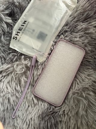 Funda para iPhone 12 en color lila, con un diseño moderno y un práctico cordón. - Material: Silicona - Color: Lila - Incluye cordón para muñeca