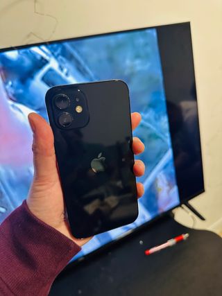 Teléfono móvil iPhone 12 mini en color negro/gris espacial funciona el face id las 2 cámaras están bien el sonido también el porcentaje de la batería funciona bien pero se baja la batería . - Pantalla de 5.4 pulgadas. - Chip A14 Bionic. - Sistema de cámara dual avanzado. - Resistente al agua y al polvo.