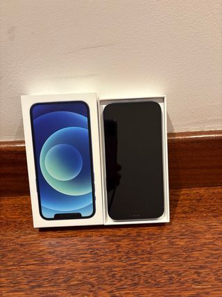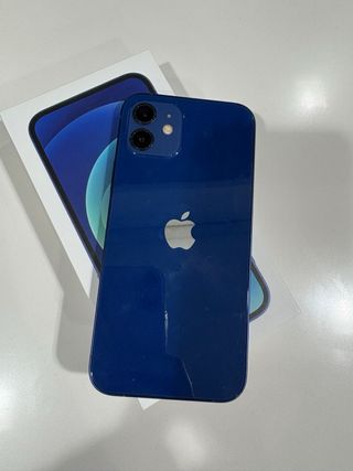 iPhone 12 en color azul con una capacidad de batería de 80% - pantalla nueva pero no original