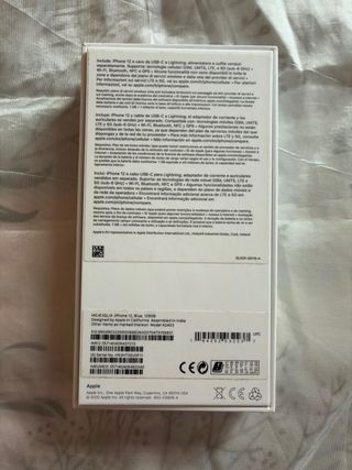 iPhone 12 en excelente estado, como nuevo por cambio de movil y conservado en su caja y cable originales. Se puede utilizar con cualquier compañía de teléfonos, libre de iCloud. Funciona el Face ID. Todo en perfecto estado, batería 86 % - Incluye todos los accesorios originales. - Cable de carga USB-C.