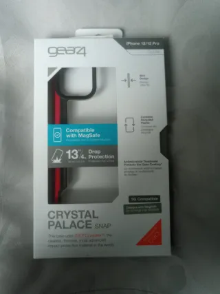 Funda protectora Gear4 Crystal Palace Snap para iPhone 12/12 Pro. Diseñada con el material D3O Crystalex para una protección avanzada. - Compatible con MagSafe. - Protección contra caídas de hasta 13 3/4 pies. - Diseño delgado y ligero. - Contiene plástico reciclado. - Tratamiento antimicrobiano.