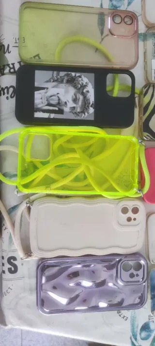 Preciosa funda para telefono ,completamente nuevo, con una bonita cadena para colgar al hombro. - Está hecho con una base negra y decorado con brillantes piedras de imitación. - El diseño es elegante y llamativo. - Ideal para ocasiones especiales. -Longitud 19cm -Anchura 12cm-cabe un IPhone16ProMax -Longitud cadena 51cm