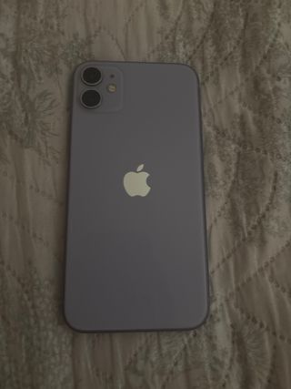 Teléfono móvil iPhone 11 en color blanco. Incluye caja y cargador original. El teléfono está en buen estado pero tiene una pequeña muesca en el lateral, no influye en el rendimiento de la pantalla, solo es estetico y poco visible. La velocidad es optima al igual que la cámara y dura la bateria el dia entero. El teléfono viene con 12 fundas también. - Pantalla de 6.1 pulgadas. - Sistema de cámara dual. - Chip A13 Bionic.
