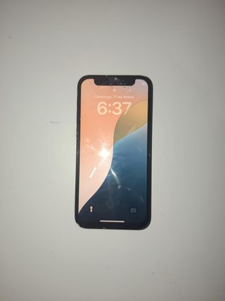 Teléfono móvil iPhone 12 mini en color negro. -IPhone 12 mini - salud batería:87% - Sin iCloud ni ningún tipo de bloqueo - Almacenamiento: 128gb El movil va perfecto solo q tiene un pequeño golpe en la pantalla q no afecta al funcionamiento La cámara tarda en enfocar
