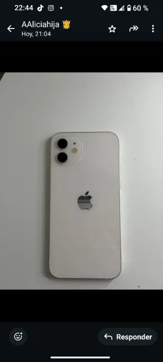 iPhone 12 blanco,128 GB, batería al 75 por cien