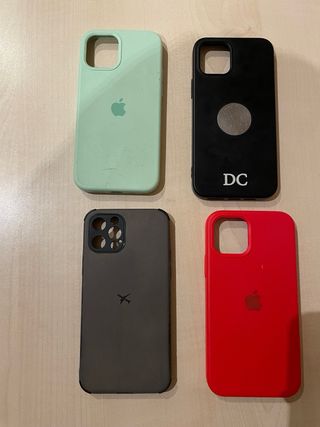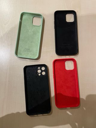 Lote de fundas para iPhone 12 Pro. - Funda verde con interior de gamuza. - Funda negra con interior liso. - Funda negra con diseño interior. - Funda roja con interior liso.