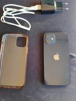 Teléfono móvil Apple iPhone 12 en color negro. Todas las piezas son originales. Precio negociable - Capacidad de almacenamiento de 64GB. - Con caja y cable de carga rápida