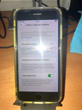 Teléfono móvil en muy buen estado. Regalo funda con cordón y protector de pantalla. - Color plata. - Capacidad de 128 GB. - Incluye caja original, cable de carga y dos pegatinas de Apple.