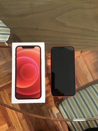 Teléfono móvil iPhone 12 en color rojo. - Capacidad de almacenamiento de 64GB. - Salud bateria 80%. - Tiene algun rasguño visible en la foto. - Funciona todo correctamente. - La venta es en Vigo