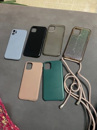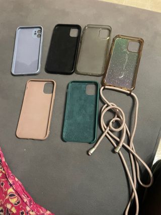 Lote de fundas para iPhone 12. - Funda azul claro - Funda negra - Funda transparente - Funda con purpurina - Funda rosa - Funda verde - Correa para colgar
