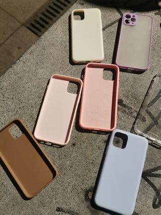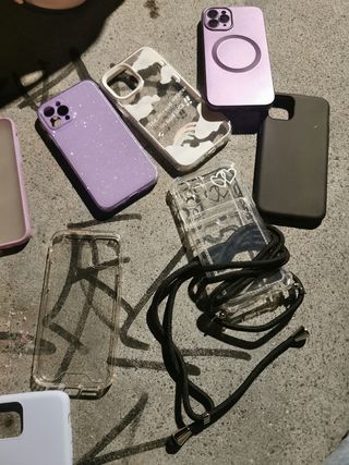 Lote de fundas para iPhone. - Compatible con iPhone 14, 13 y 15. - Variedad de diseños y colores. - Materiales diversos.Son 12 fundas