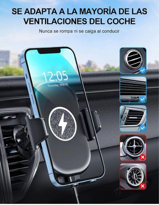 Marca: Mohard Mohard 15W Qi Cargador Inalámbrico Coche con Adaptador Cargador QC 3.0, Soporte Móvil Coche Carga Rápida, Rotación de 360° Sujeta Movil Coche Compatible con iPhone 15 Pro Max/14/13/12, Galaxy y Otros Esta nuevo, pero sin caja