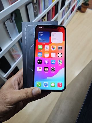 Vendo un iPhone 12 Pro en color negra con una capacidad de almacenamiento de 128 GB. La batería está al 95%. El teléfono se ve en excelentes condiciones. - Fecha de compra: 04/07/2025 - SIM: Libre - Versión: 18.5