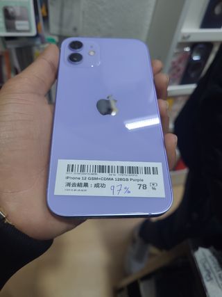 Teléfono móvil Apple iPhone 12 en color azul marino. se vende iPhone con bateria nueva al 100 de salud cambiada y pantalla cambiada nueva el lunes con garantía un año cambiado en tienda oficial de teléfonos no en ningún pakistani , va perfecto único roces del uso y del tiempo nada que afecte a su funcionamiento ( no hay caja )