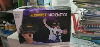 Juego educativo para edad a partir de 5 años Heromask gafas VR, paño de microfibra, código de activación para el videojuego Heromask Mathematics , manual de usuario. Ajuste interpupilar (válidas tanto para los ojos de los niños como de los adultos) y botón mecánico incorporado (no necesita pilas). Compatible con iOS y Android Compatible con Android 4.4 o superior, iPhone 5s (excepto iOS 12), dimensiones inferiores a 6,5 x 3 pulgadas y dispone de sensor giroscopio. Las gafas de realidad virtual pueden ser usadas por toda la familia para ver videos o jugar a otros juegos de realidad virtual.