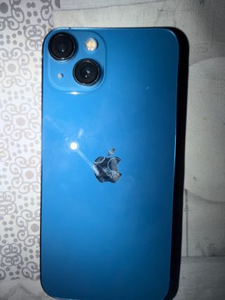 Teléfono móvil iPhone 13 en color azul. - Pantalla de 6.1 pulgadas. - Sistema de cámara dual avanzado. - Chip A15 Bionic. Tiene rota la parte trasera , no influye en nada Tiene todo original y salud bateria al 100% 256GB