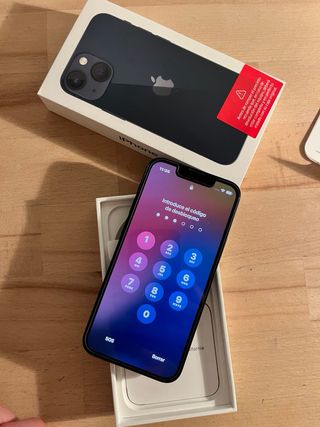 iPhone 13 Mini con pantalla y trasera en perfecto estado, siempre con funda y protector de pantalla. El unico defecto que tiene es un raspón en la parte superior que no se ve con la funda puesta (a mi hijo le pareció muy divertido arrastrar el iPhone por la pared 🤦🏻). Batería al 85%, incluye caja, cable de carga, y regalo 2 fundas. Ideal como movil de entrada en el mundo Apple o si te encantan los telefonos pequeños, ya que con sus 5.4 pulgadas es el smartphone con la mejor calidad tamaño - potencia.