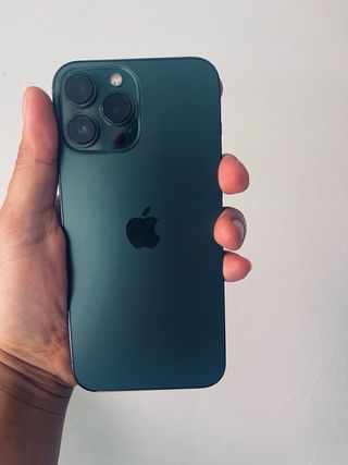 Teléfono móvil iPhone 13 Pro Max en color verde noche. Se encuentra en perfecto estado, siempre protegido por funda, protector de pantalla y de cámara. - Capacidad de la batería al 85%. - Capacidad de almacenamiento de 128 GB. - Incluye cable de carga y caja original.