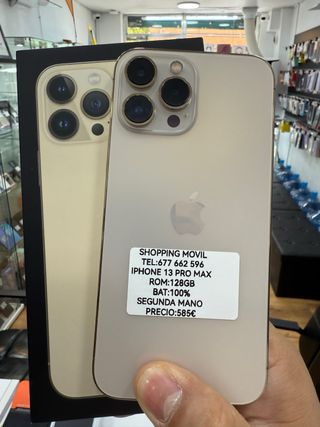 iPhone 13 Pro Max en perfecto estado, con 128GB de almacenamiento y batería al 100%. Ideal para quienes buscan un móvil de alta gama. - Modelo: iPhone 13 Pro Max - Capacidad: 128GB - Color: Oro - Batería: 100% - Estado: Segunda mano