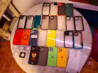 - Fundas y protectores para iPhone 13 pro Max y protectores de pantalla y cámara. - Fundas 24 en total de todos los colores y modelos - 3 protectores de pantalla de cristal templado - Protectores cámara 5 en total. No separo, todo lo que va en la foto se envía junto