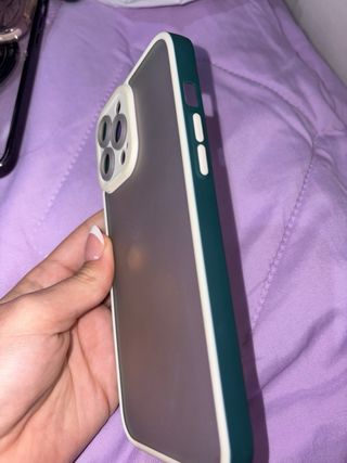 Funda protectora para iPhone 13 Pro Max con acabado translúcido. - Borde de color verde oscuro. - Diseño con protección para las cámaras.