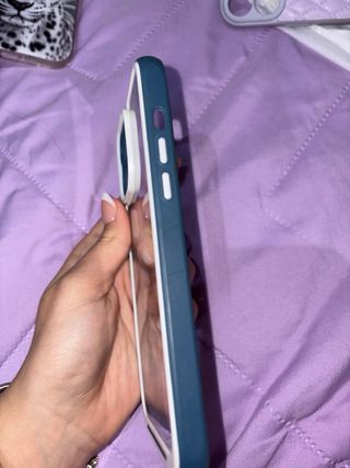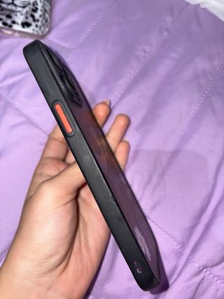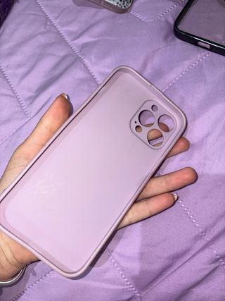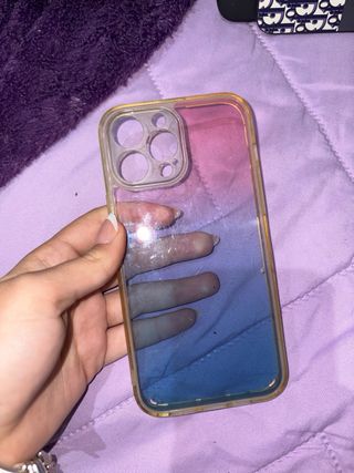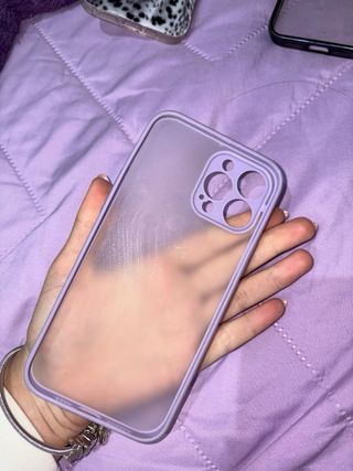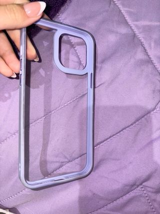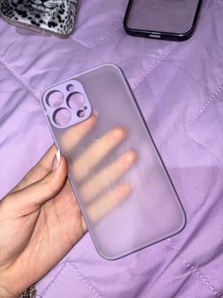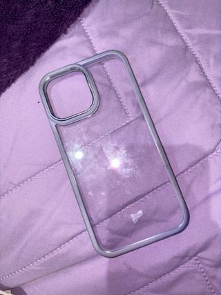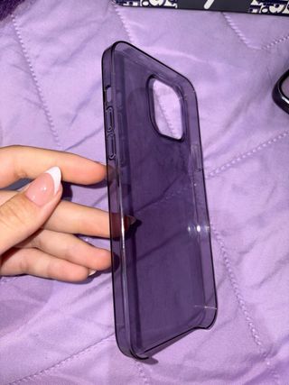 Funda transparente de color morado para iPhone 13 Pro Max. - Material flexible. - Diseño ajustado al teléfono.