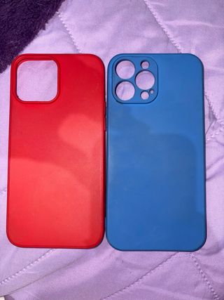 Dos fundas protectoras para iPhone 13 Pro Max, una en color rojo y otra en azul. - Funda roja. - Funda azul. - Diseño con protección para cámara.
