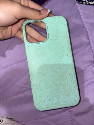 Funda para iPhone 13 Pro Max en color verde menta con motas marrones. - Diseño con acabado mate. - Logo de EcoCase grabado en la parte inferior.