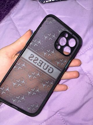 Funda para iPhone 13 Pro Max con diseño de la marca Guess. - Acabado translúcido. - Logo de Guess en relieve.