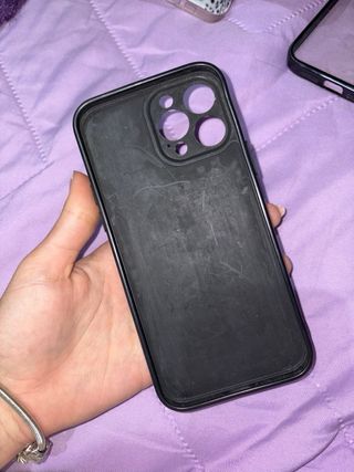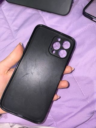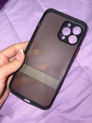 Funda protectora para iPhone 13 Pro Max. - Color negro mate. - Material flexible y resistente. - Diseño que cubre los bordes del teléfono.
