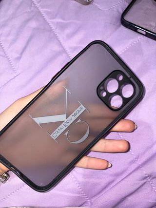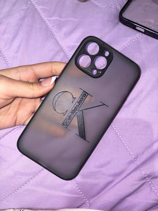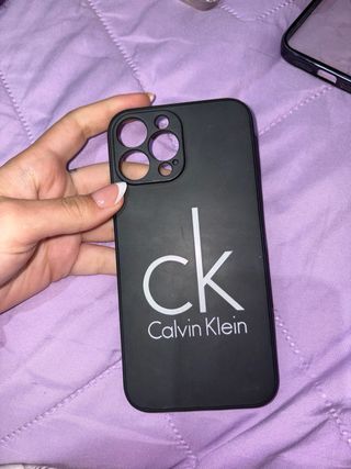 Funda negra para iPhone 13 Pro Max con el logo de Calvin Klein. - Diseño con el logo ck y Calvin Klein en blanco. - Recorte para la cámara trasera.
