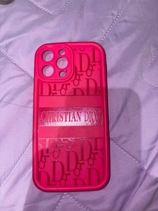 Funda para iPhone 13 Pro Max con el distintivo diseño de Christian Dior. - Color rosa vibrante. - Estampado de logotipos 'CD' por toda la funda. - Banda central con el nombre 'CHRISTIAN DIOR' en relieve.