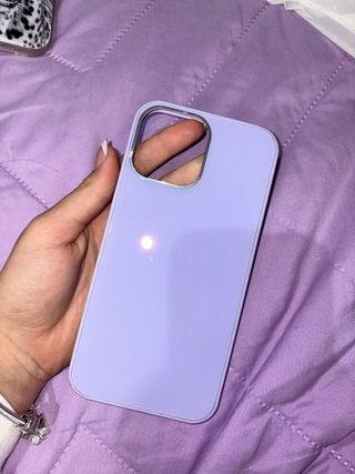 Funda protectora para iPhone 13 Pro Max en un bonito color morado. - Diseño liso y elegante. - Borde plateado alrededor de la cámara.