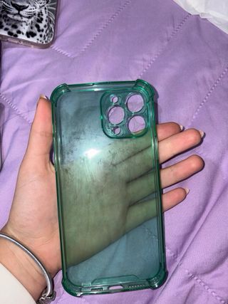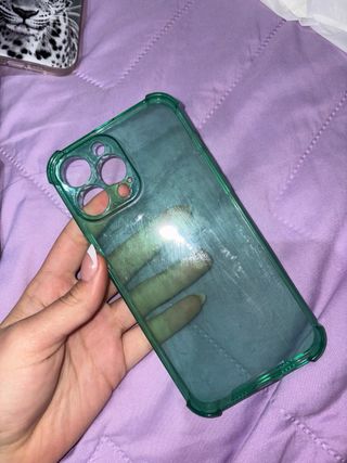 Funda protectora transparente para iPhone 13 Pro Max. - Material flexible y resistente. - Diseño que permite ver el color original del teléfono. - Bordes reforzados para mayor protección.