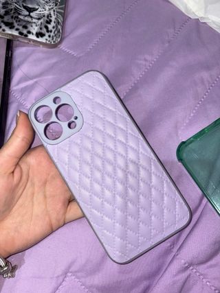 Funda para iPhone 13 Pro Max con un diseño acolchado y elegante. - Color lila. - Acabado tipo piel. - Diseño acolchado en rombos.