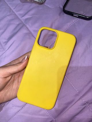 Funda protectora para iPhone 13 Pro Max en color amarillo. - Material de silicona. - Diseño liso y moderno.