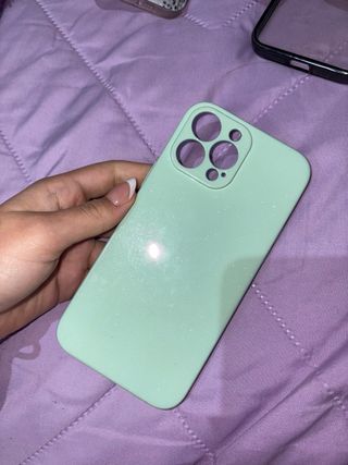 Funda protectora para iPhone 13 Pro Max en un bonito color verde claro. - Material suave al tacto. - Diseño que cubre los bordes del teléfono.
