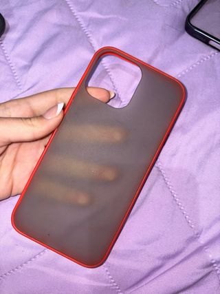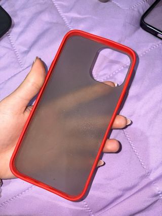 Funda protectora para iPhone 13 Pro Max con borde rojo. - Material translúcido. - Borde de goma flexible.