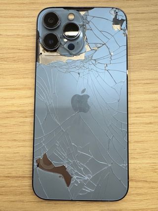 Iphone 13 Pro Max Azul : - Cristal trasero roto - Pantalla delantera rota - Capacidad de bateria 80% - 128Gb de almacenamiento El telefono esta roto por delante y por detras. Se podria cambiar ambos cristales y el telefono funcionaria perfectamente.