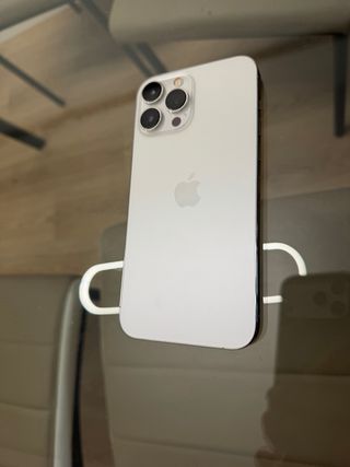 iPhone 13 Pro Max en color Blanco 128Gb, con caja, cable, factura de compra en Mediamarkt Bataría 92% Fundas - Regalo - Pantalla de 6.7 pulgadas. - Sistema de triple cámara avanzado. - Chip A15 Bionic para un rendimiento superior. - Diseño elegante y duradero.