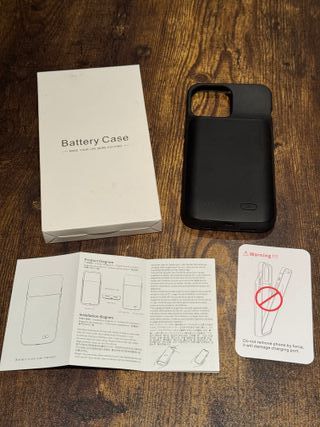Funda con batería integrada tipo Newdery pero sin marca para iPhone 13 Pro Max. Protege tu teléfono y te da energía extra. Capacidad de 4.800 mAh. - Diseño en color negro. - Incluye manual de usuario.