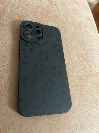 Funda para iPhone 13 Pro Max con diseño de balones. - Color: Negro - Diseño: Balones de fútbol - Material: Silicona - Protección para la cámara