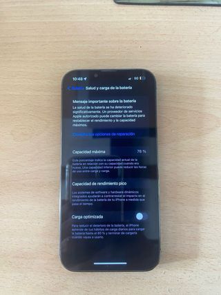 Este iPhone 13 Pro en color gris espacial ofrece un diseño elegante y moderno. Sin ningún rasguño ni marca, siempre con funda. Tiene la batería al 78% por lo que se recomienda cambiarla, la pantalla no es original es una remanufacturada, se recomendaría cambiarla porque la cámara delantera tiene polvo por dentro. - Pantalla Super Retina XDR. - Sistema de triple cámara avanzado. - Chip A15 Bionic para un rendimiento superior.