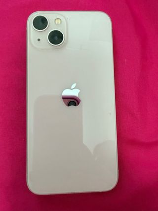 Teléfono móvil iPhone 13 en color rosa. En muy buen estado, incluye cristal templado y protector de las cámaras traseras, y cable de carga. Salud de batería 63%. Personas serias.